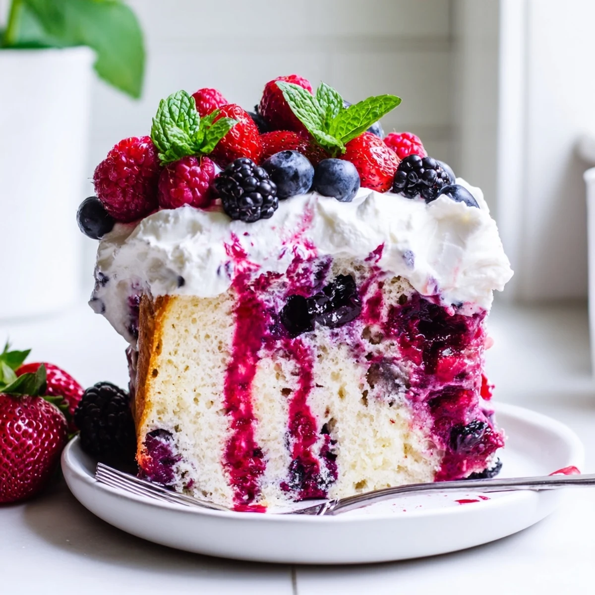 The combination of juicy strawberries, blueberries, raspberries, and blackberries delivers an explosion of summer flavors in every bite. After chilling, the cake develops a pudding-like texture that's incredibly refreshing on warm days. It's an ideal make-ahead dessert for barbecues, potlucks, and family celebrations.